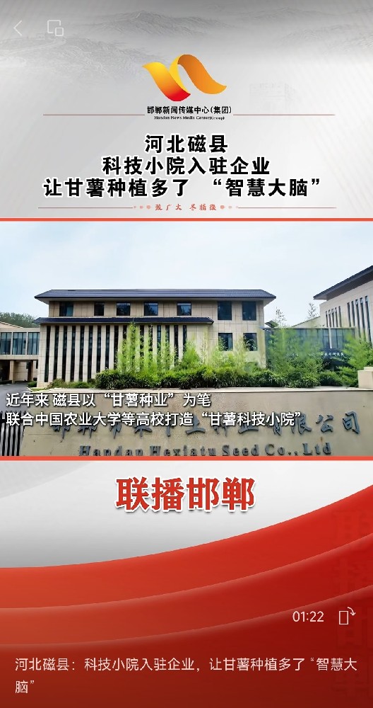 2025年8月13日,繼磁縣融媒體中心發(fā)布《活力磁縣│科技小院入駐企業(yè)!甘薯種植裝上“科技引擎”》后,邯鄲新聞傳媒中心發(fā)布《河北磁縣:科技小院入駐企業(yè),讓甘薯種植多了“智慧大腦”》的視頻。2024年,磁縣以“甘薯種業(yè)”為核心抓手,依托禾下土種業(yè),聯(lián)合高校建立“甘薯科技小院”,構(gòu)建起甘薯種業(yè)科技創(chuàng)新與成果轉(zhuǎn)化一體化綜合平臺,通過技術(shù)研究、新品種選育、良種繁育、人才培養(yǎng)與社會服務(wù)等方式,全方位賦能甘薯產(chǎn)業(yè)發(fā)展,為鄉(xiāng)村全面振興注入強(qiáng)勁動力。