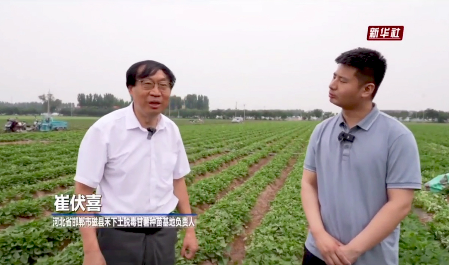 2024年6月5日,新華社直播節(jié)目《神州大地芒種忙》如期播出。節(jié)目中,邯鄲市禾下土種業(yè)有限公司總經(jīng)理崔伏喜陪同新華社河北分社記者張瑋華走進(jìn)禾下土脫毒甘薯種苗基地、種薯基地、組培中心,察看組培苗移植擴(kuò)繁、種苗剪收與栽種等一系列繁忙有序的作業(yè),并現(xiàn)場解讀甘薯脫毒組培關(guān)鍵環(huán)節(jié)、種苗采收流程、種苗栽種技巧,了解禾下土在組培擴(kuò)繁苗創(chuàng)新、組培技術(shù)應(yīng)用、甘薯提質(zhì)增效等方面創(chuàng)新發(fā)展成果,展現(xiàn)了企業(yè)在實(shí)現(xiàn)農(nóng)業(yè)現(xiàn)代化、提升甘薯品質(zhì)方面的蓬勃發(fā)展。