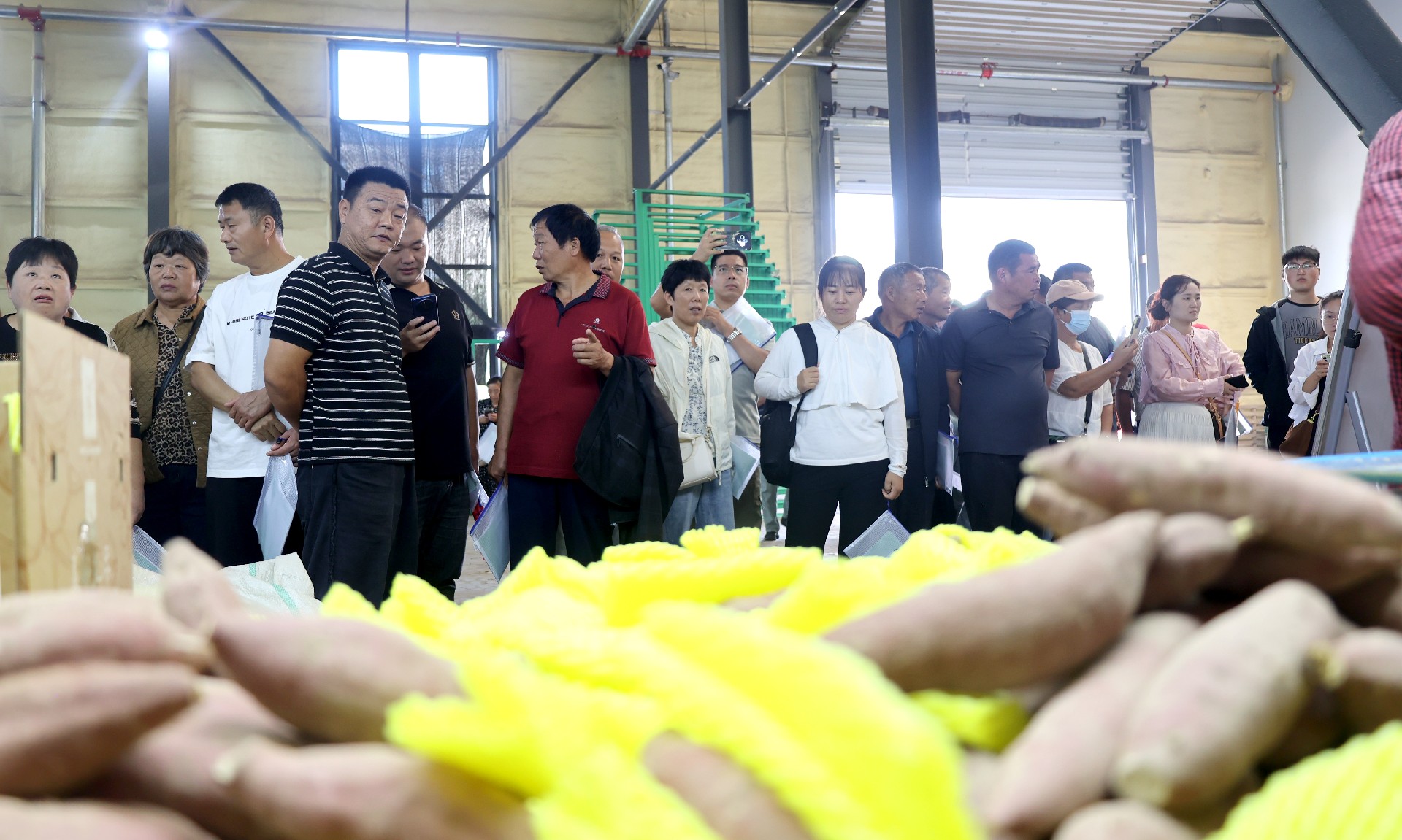 參觀公司展廳,進一步了解甘薯種業(yè)的發(fā)展現(xiàn)狀,禾下土現(xiàn)行的脫毒甘薯二級育苗體系,較國家標準的四級育苗標準足足提升兩級,大幅縮短育苗周期、降低培育成本。公司年產(chǎn)甘薯組培苗1.2億株、脫毒種薯1500余萬公斤、脫毒種苗10余億株,銷售覆蓋全國29個省區(qū)市。同時依托億甲寧一站式服務平臺,為農(nóng)業(yè)企業(yè)、種地大戶、家庭農(nóng)場等新型農(nóng)業(yè)經(jīng)營主體提供全方位指導,直接帶動9251戶農(nóng)民增產(chǎn)增收。在智能化倉儲中心,眾人聚焦于現(xiàn)場的甘薯品質檢測與等級分揀環(huán)節(jié),從表皮完整性、形狀規(guī)整度等方面對甘薯進行分揀,既保證了每一批次甘薯的品質一致性,也為不同市場需求提供了精準的產(chǎn)品匹配。