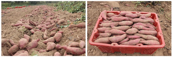 ⑷適時收獲。該品種為早熟鮮食迷你型甘薯,早熟性好。適宜生育期(扦插至收獲)100天左右。