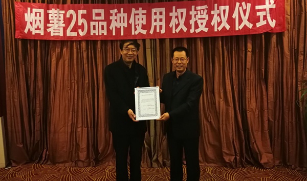 在會上,邯鄲市禾下土種業有限公司與授權單位山東省煙臺市農科院簽署了煙薯25品種使用權授權合同。