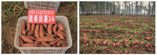 脫毒徐薯34比普通徐薯34增產增產60~104%,一般春薯畝產量2000公斤,夏薯畝產量1500公斤。