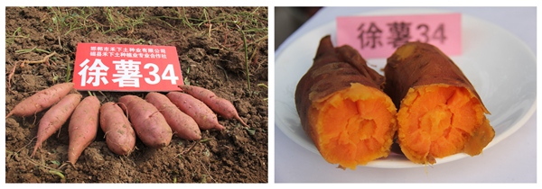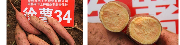 該品種赭紅皮桔紅肉,長紡錘形,蒸煮、生食口感好,許多地方已進行精包裝進超市,市民也把它作為一種禮品贈送親朋好友。徐薯34比一般的甘薯品種早熟20~30天,能早收早上市,彌補市場空缺,經濟效益高,特別適宜城郊地區發展。